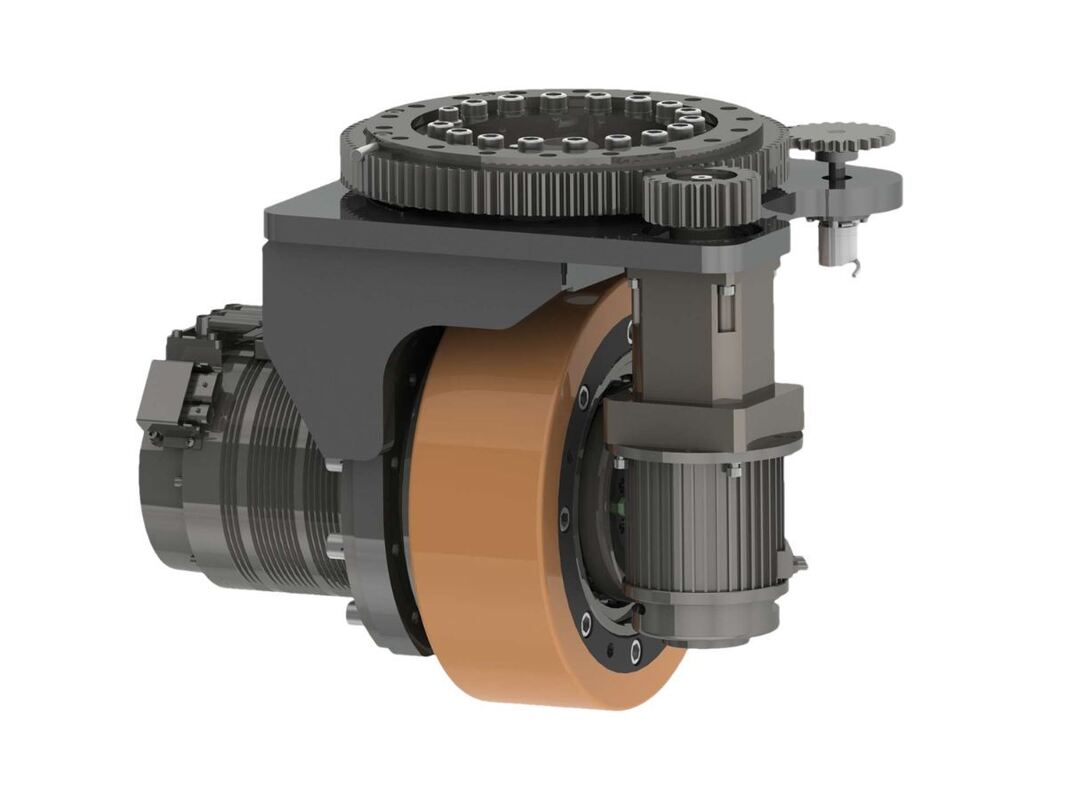 ล้อบังคับเลี้ยวแนวนอนของ AGV มีการออกแบบที่เป็นหนึ่งเดียวซึ่งรวมมอเตอร์บังคับเลี้ยว กลไกการส่งกำลังแบบลดทอน หน่วยป้อนกลับตำแหน่ง อุปกรณ์จำกัด และกลไกการหมุน ทั้งหมดนี้อยู่ในโมดูลขนาดกะทัดรัด
